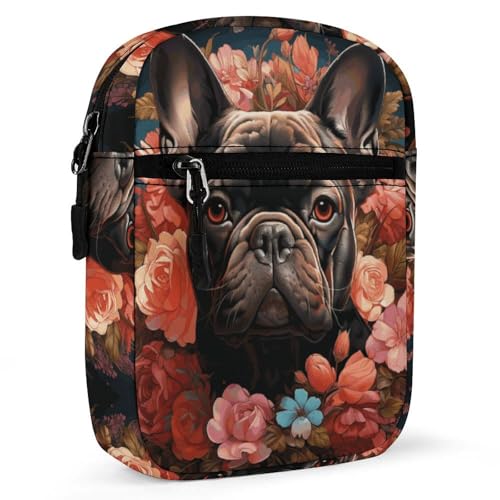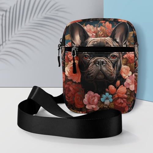 Personalized Small Crossbody Bag Water Resistant Messenger Bags Mini Bulldog And Flowers Printing SlingBag For Men Women 1