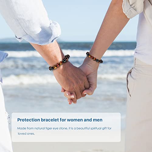 Tiger Eye Bracelet,Relax Anxiety Crystal Beaded Triple Protection Jewelry Bead Stone Chakra Gemstones Bracelets for women men 5