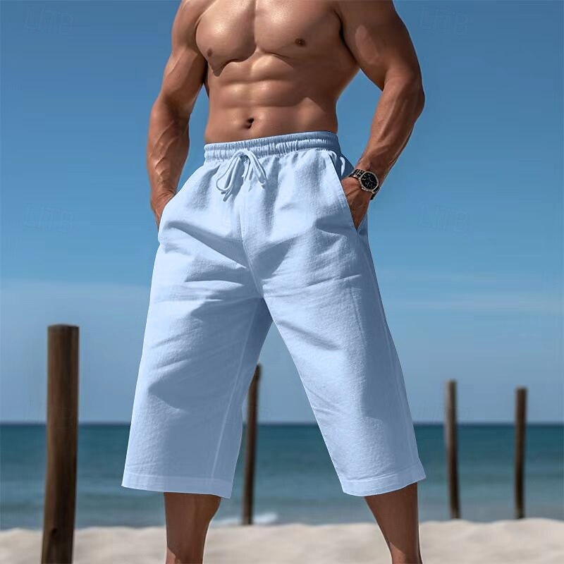 HOT ! Men's Shorts Linen Shorts Beach Shorts Capri Pants Drawstring Elastic Waist Plain Comfort Breathable Calf-Length Outdoor Daily Holiday Vacation Casual Black White