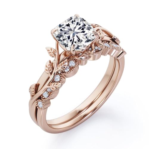 1-5 Carat (ctw) Cushion Cut Moissanite/Lab Grown Diamond Engagement Ring Sets for Women 925 Sterling Silver 10K 14K 18K Gold Bridal Sets Wedding Rings for Her 1