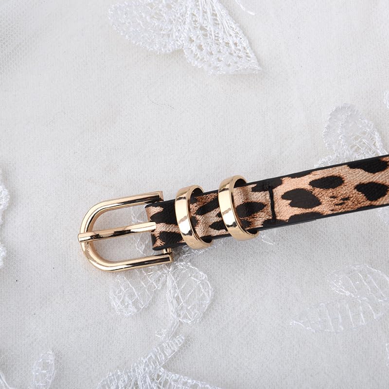 Leopard Print Belt Thin Skinny Western Cowgirl Belt for Dress Jeans Vintage Animal Leopard Belts for Women Girls Y2k Fashion Womens Faux Leather Belts for Pants Skirts Retro Animal Printed Accessories 5