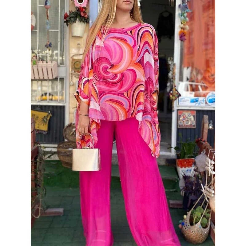 HOT ! Women's Fashion Streetwear Daily T Shirt Wide Leg Pants 3/4 Length Sleeve Crew Neck Ombre Casual Daily Yellow Pink Blue Summer Regular Fit