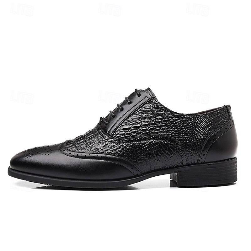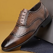 HOT ! Men's Brown Crocodile Pattern Faux Leather Oxford Shoes – Classic Lace-Up Dress Shoes for Business, Weddings and Formal Parties