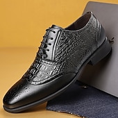 More information about Men's Brown Crocodile Pattern Faux Leather Oxford Shoes – Classic Lace-Up Dress Shoes for Business, Weddings and Formal Parties