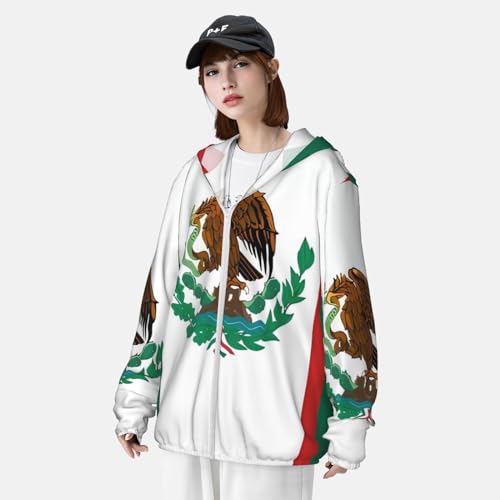 HOT ! Sun Protection Hoodie for Men Women UPF 50+ Long Sleeve Rash Guard Jacket Flag of Mexico Lightweight Sun Shirt