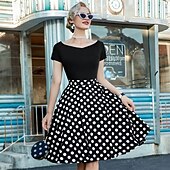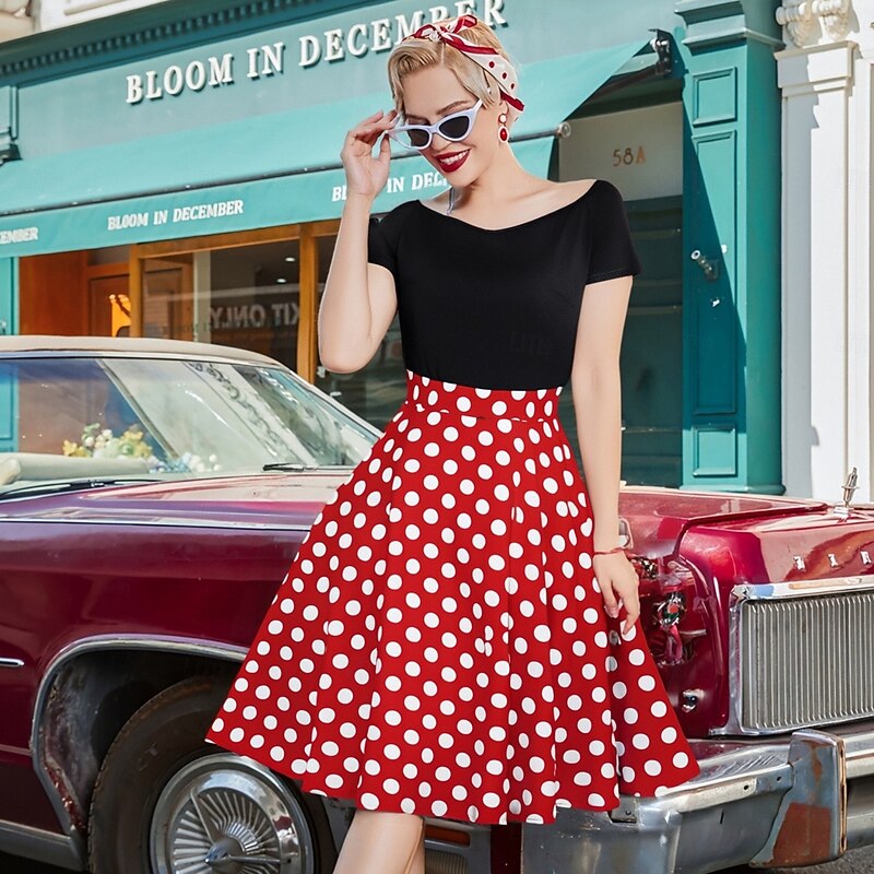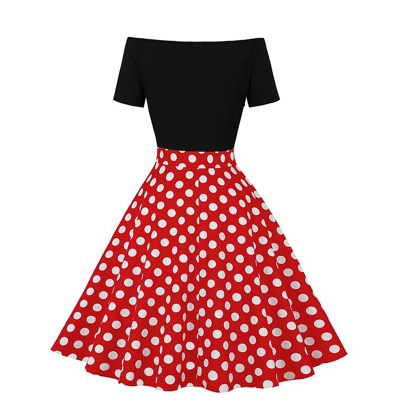More information about Retro Vintage 1950s Rockabilly Midi Swing Dress Flare Dress Off Shoulder Polka Dot Fancy Dress Women's Carnival Casual Daily Wear Retro Theme Party Adults' Dress Spring & Summer