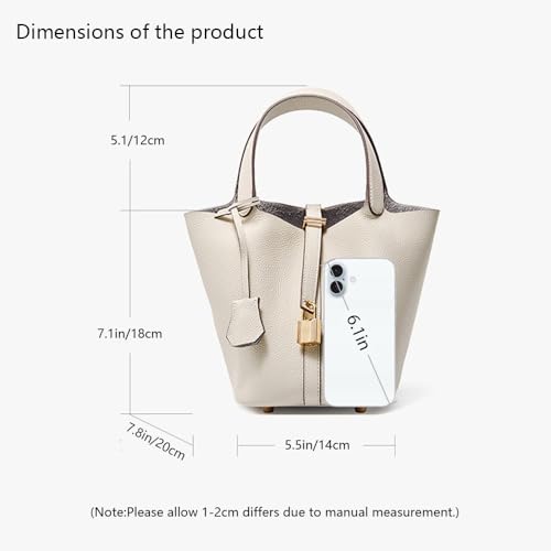 Genuine Leather Lock Design Bucket Bag Vegetable Basket, Fashionable and Versatile Shoulder Handbag 6