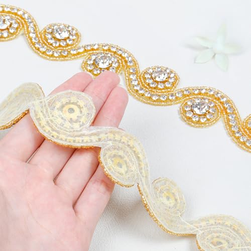 • Handmade Rhinestone Applique Wedding Sash :1Pack 3.2 cm wide and 92 cm long Gold wedding belt for bride dress