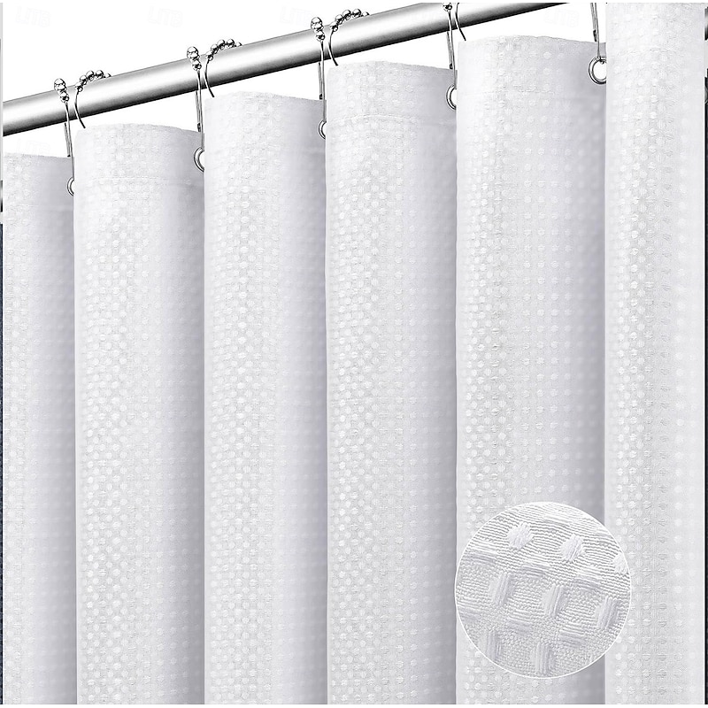 HOT ! Fabric Shower Curtain Waffle Textured Heavy Duty Cloth Curtains for Bathroom, Hotel Spa Luxury Weighted Polyester Bath Curtain Set with 12 Plastic Hooks
