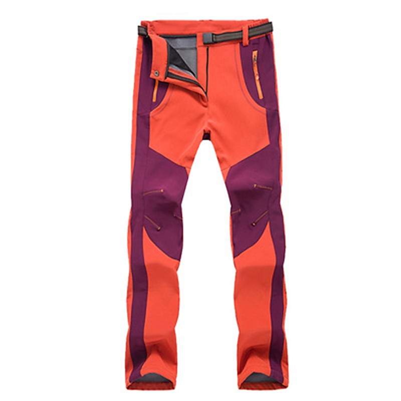 HOT ! Women's Fleece Lined Pants Waterproof Hiking Pants Black Trousers Softshell Pants Winter Outdoor Thermal Warm Windproof Lightweight Elastic Waist Bottoms Army Green Burgundy Orange Camping