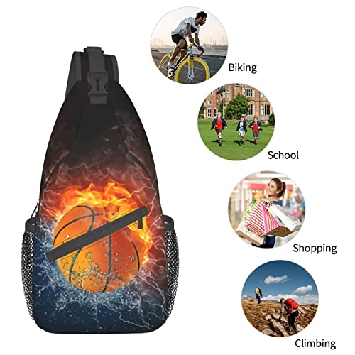 • ☀️High Storage Capacity: This Flaming Basketball Crossbody Sling Bag Can Accommodate Many Items, Such As IPad, Books, Clothes, Cameras, Etc. There Is A Patch Pocket On Bboth Sides Of The Chest Bag, Which Can Be Used To Place Umbrellas Or Water Cups. The Shoulder Strap Is Lightweight, Which Can Reduce Shoulder Pressure.
