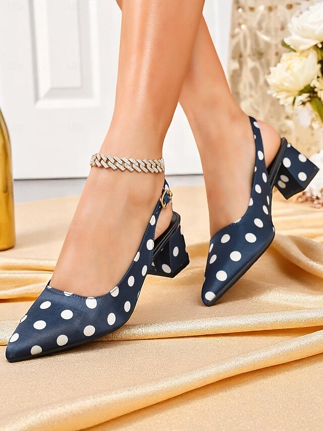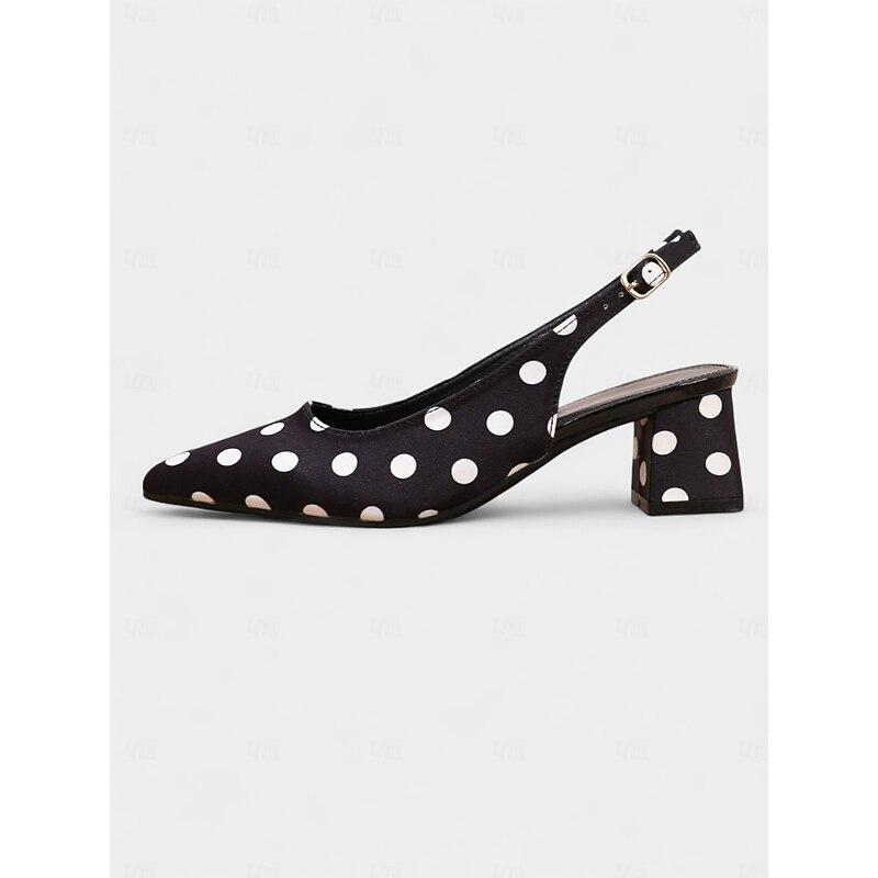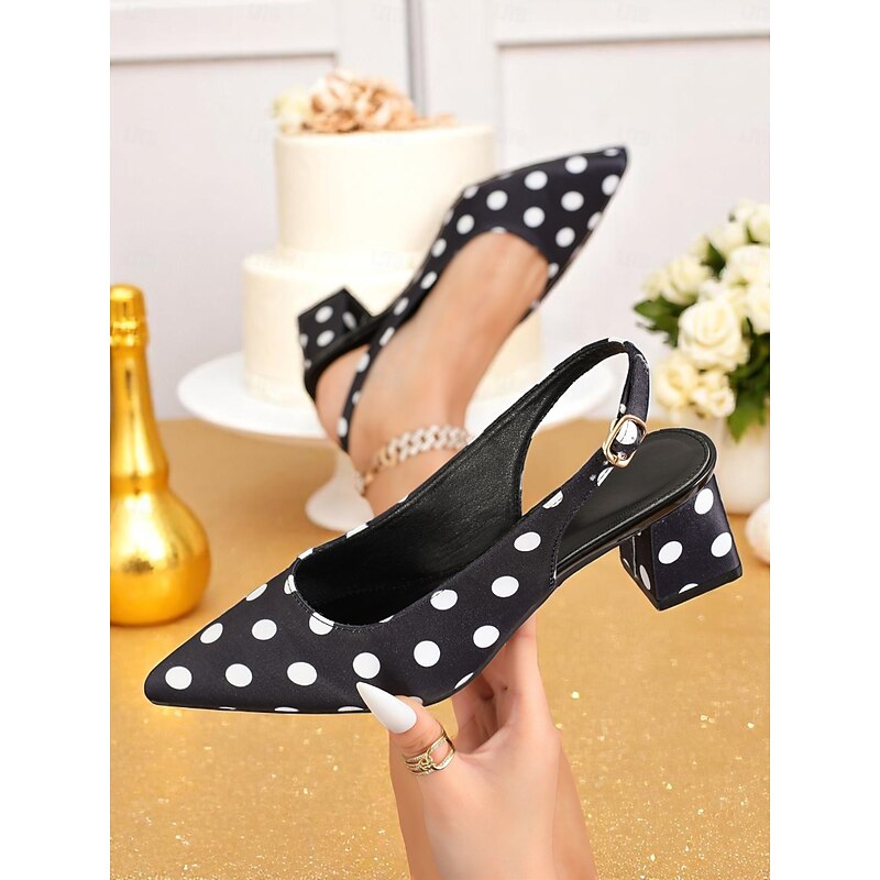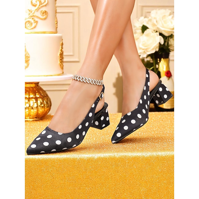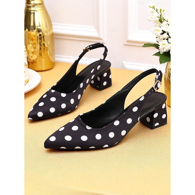 HOT ! Women's Polka Dot Slingback Block Heel Pumps – Vintage 1950s Style Dress Shoes for Parties, Office, and Retro Events