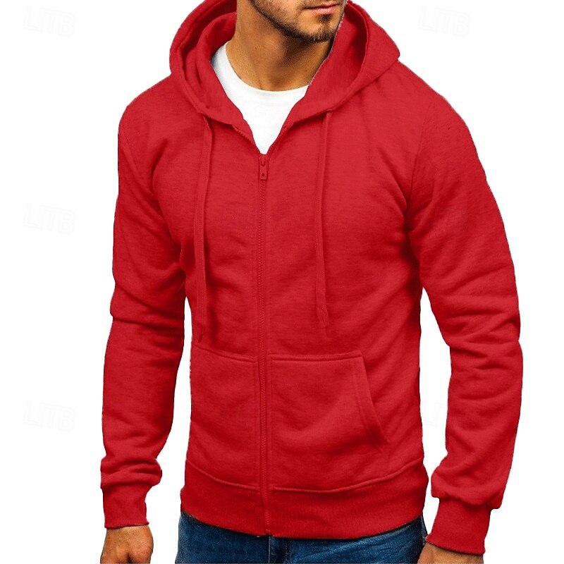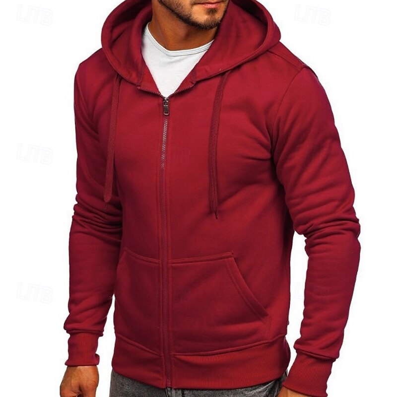 More information about Men's Hoodie Full Zip Hoodie Fleece Hoodie Black White Army Green Red Burgundy Hooded Plain Zip Up Pocket Sports & Outdoor Casual Daily Streetwear Cool Sportswear Spring & Fall Clothing Apparel