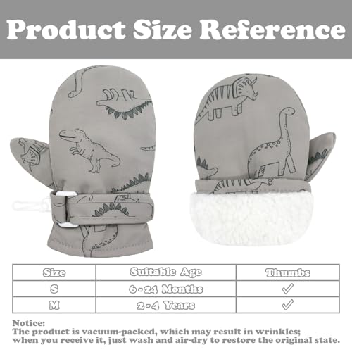 • SIZE INFORMATION: The baby mittens winter are available in 2 sizes. Size S is recommended for 6-24 months; Size M is recommended for 2-4T. All the baby gloves have separate thumbs designs, which can make it easier for your baby to grab things or playing.