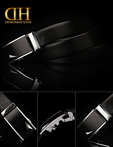 • EASY TO USE — Just slide the dress belt into the sliding buckle and pull the ratchet belt through, the nice belts buckle simply auto locks the automatic belt, to release the belt, gently push the lever on the side of the removable buckle and lock will snap. Simple, smooth and fashionable.