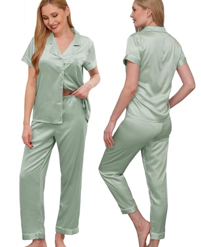 • PREMIUM-QUALITY MATERIALS: This lightweight pajama set is made of luxurious silky satin fabric, ultra silky-soft and lightweight, breathable and quick-drying, warm and anti-static, comfortable and skin-friendly. Not only in plain color options but also with gorgeous allover digital printing in floral pattern A04.