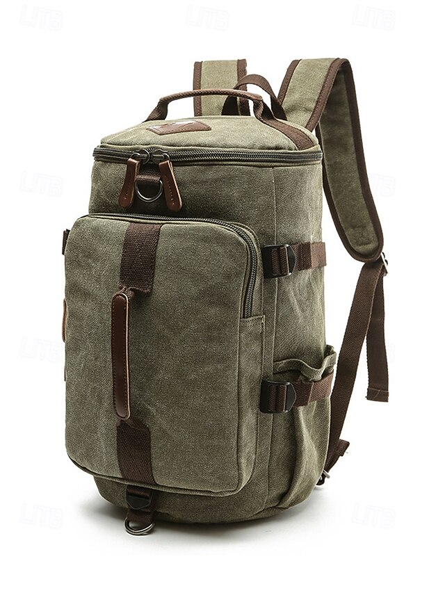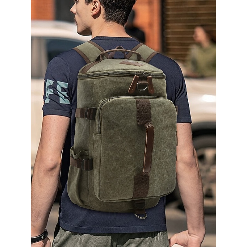 Men's Vintage Canvas Convertible Backpack Duffel Bag - Large Capacity Multi-Function Travel Shoulder Bag for Back to School, Weekend Trips, Gym and Outdoor Use 14