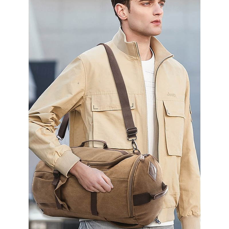 Men's Vintage Canvas Convertible Backpack Duffel Bag - Large Capacity Multi-Function Travel Shoulder Bag for Back to School, Weekend Trips, Gym and Outdoor Use 10