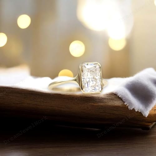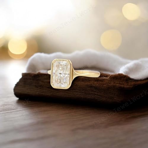 More information about Radiant Cut Moissanite Engagement Ring 9k solid yellow gold Diamond Ring Bezel Set Solitaire Moissanite Wedding Ring Handmade Jewelry Bridal Promise Gift For Her