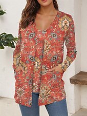 More information about Women's T Shirt Graphic Geometric Abstract Vintage Stylish Casual Long Sleeve V Neck Regular Tops Daily Print Pink Red Blue Green Summer Spring Fall