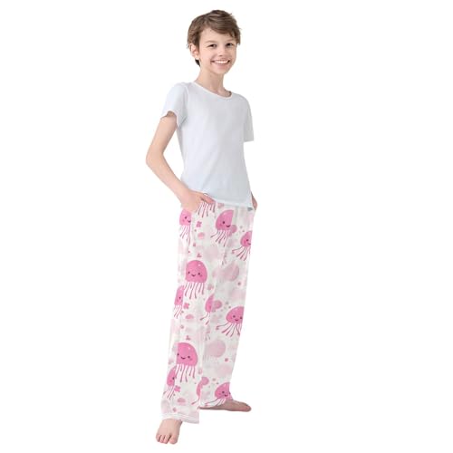 Pink Jellyfish Boys Pants Boys Athletic Pants Long Pant for Boywith Pockets Wide-Leg Size 6-14Y 1