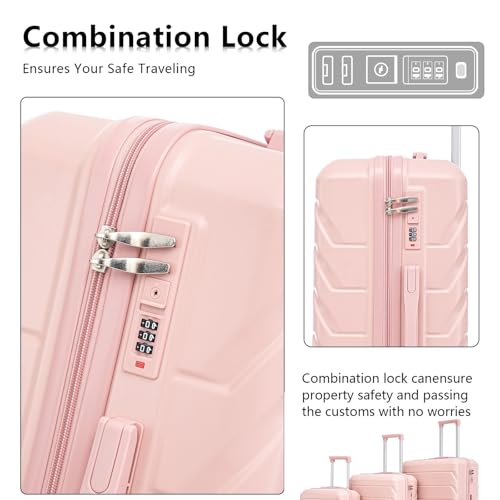 3-Piece Pink ABS Wheel Luggage Set - 20"/24"/28" with Combination Lock - Durable & Waterproof Travel Suitcases 6