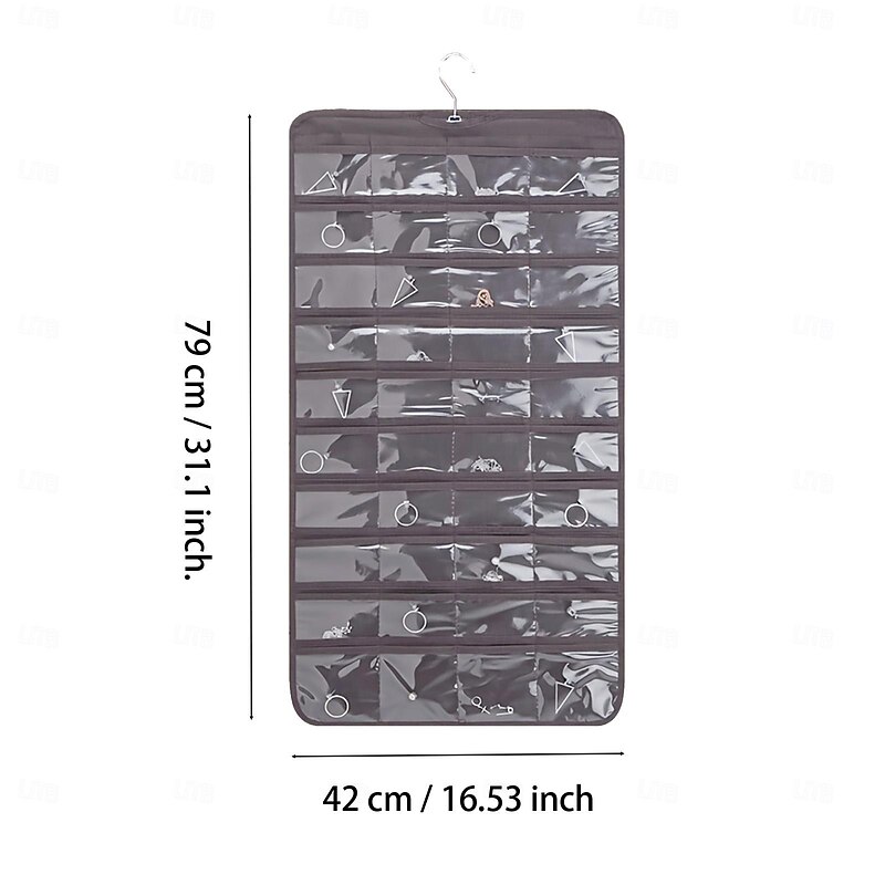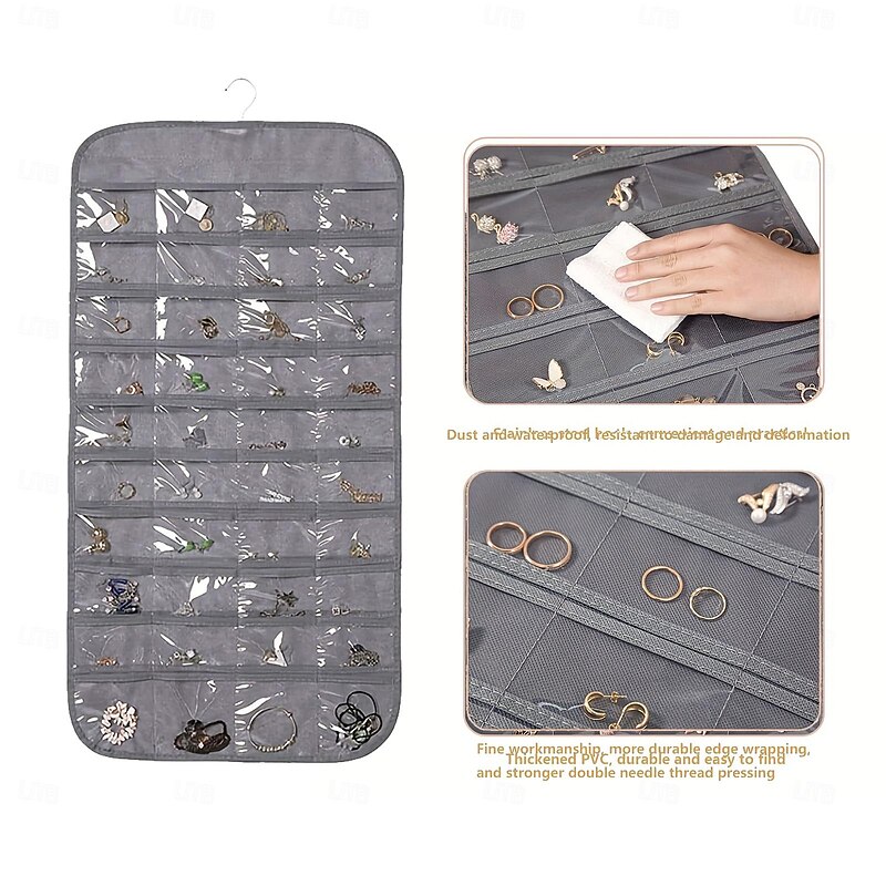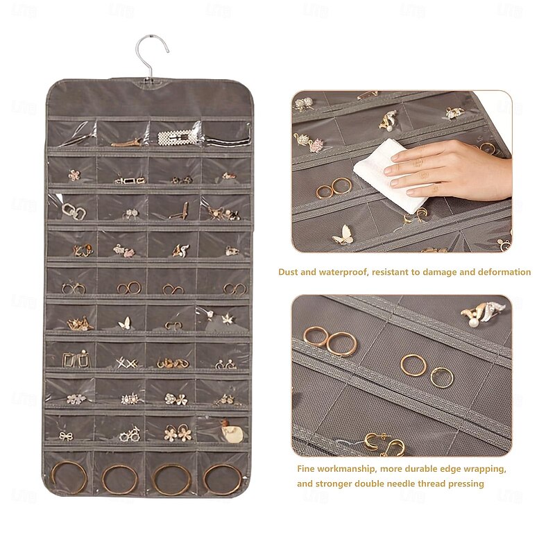 Hanging Jewelry Organizer Bag with 80 Pockets - Double-Sided Rotating Hook for Necklaces, Earrings, Dust-Proof Wall-Mounted Display Pouch for Accessories 7
