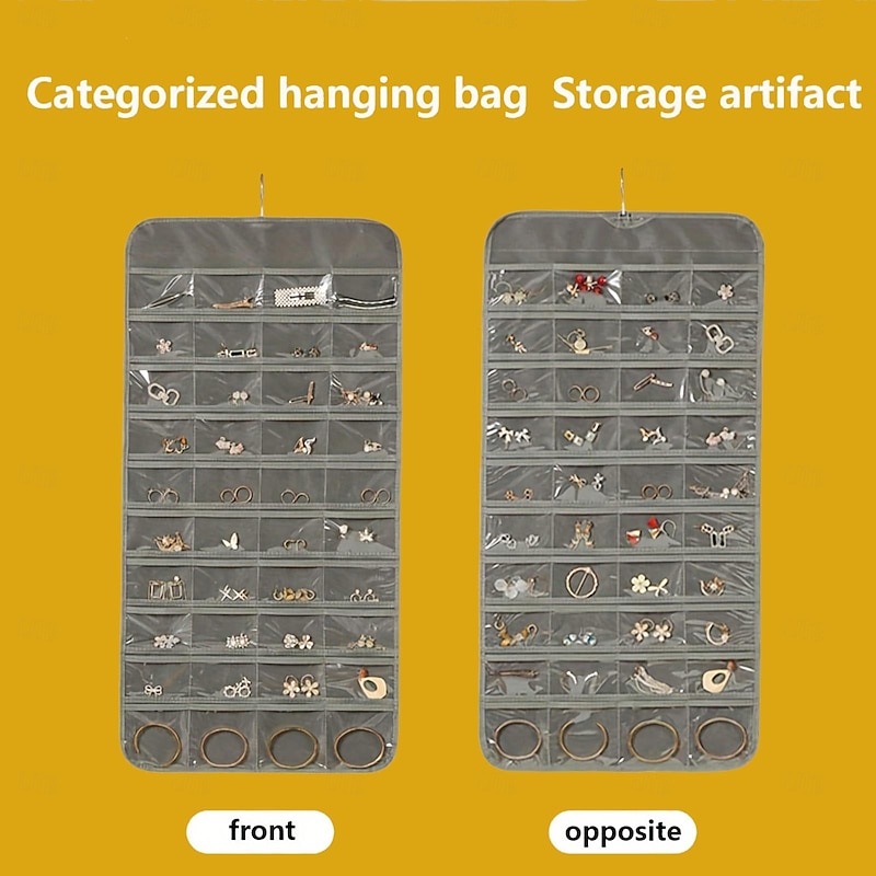 Hanging Jewelry Organizer Bag with 80 Pockets - Double-Sided Rotating Hook for Necklaces, Earrings, Dust-Proof Wall-Mounted Display Pouch for Accessories 11