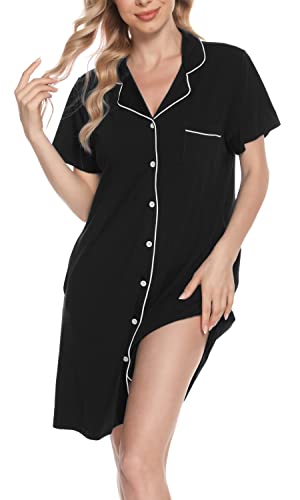 • 【ELEGANT DESIGNED SLEEPWEAR】 Unique & chic boyfriend style sleepshirt with sexy v neck + short sleeve+ front pocket + Lapel collar + full button down,keen length,loose hem. Button up nightshirt can be as a nursing nightgown or breastfeeding shirts for postpartum women and wear a nursing bra underneath,the long shirt is easy to take on or take off.