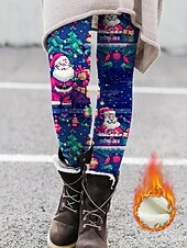 More information about Women's Leggings Cozy Leggings Fashion Streetwear Basic Full Length High Waist Pants Christmas Graphic Santa Claus Printing Fleece Thermal Warm Comfy Stretchy Outdoor Casual Daily Deep Blue Fall