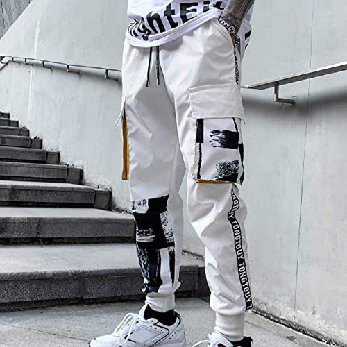 XYXIONGMAO Men's White Tactical Harem Pants with Pockets Techwear Streetwear Hip Hop Joggers Sweatpants Cargo Pants for Men 7