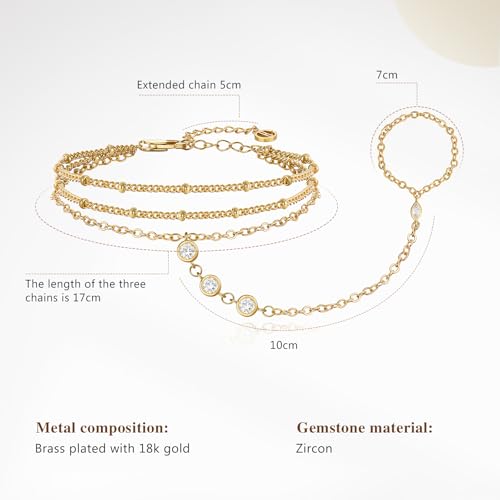 • Gold Bracelets for Women: This hand chain is crafted from premium 18K gold plated material—nickel-free, lead-free, hypoallergenic, and resistant to discoloration. Lightweight and comfortable, our ring bracelets won't harm your skin, perfect for everyday wear