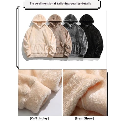 Qozys Fluffy Hoodie, Men's Fuzzy Sherpa Sweatshirt Long Sleeve Fashion Pullover Winter Warm Fluffy Faux Fur Hoodies 7