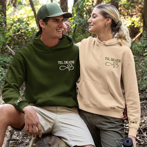 Personalized Embroidered Matching Couple Sweatshirts - Christmas, Roman Numeral Date, Anniversary 'Til Death - For Couples 1