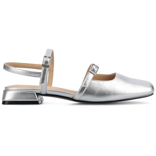 Journee Collection Women's Gretchenn Buckle-Strap Heeled Mary Jane Flats, Silver, 10 Wide 7