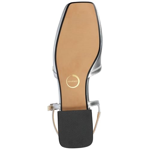 Journee Collection Women's Gretchenn Buckle-Strap Heeled Mary Jane Flats, Silver, 10 Wide 5