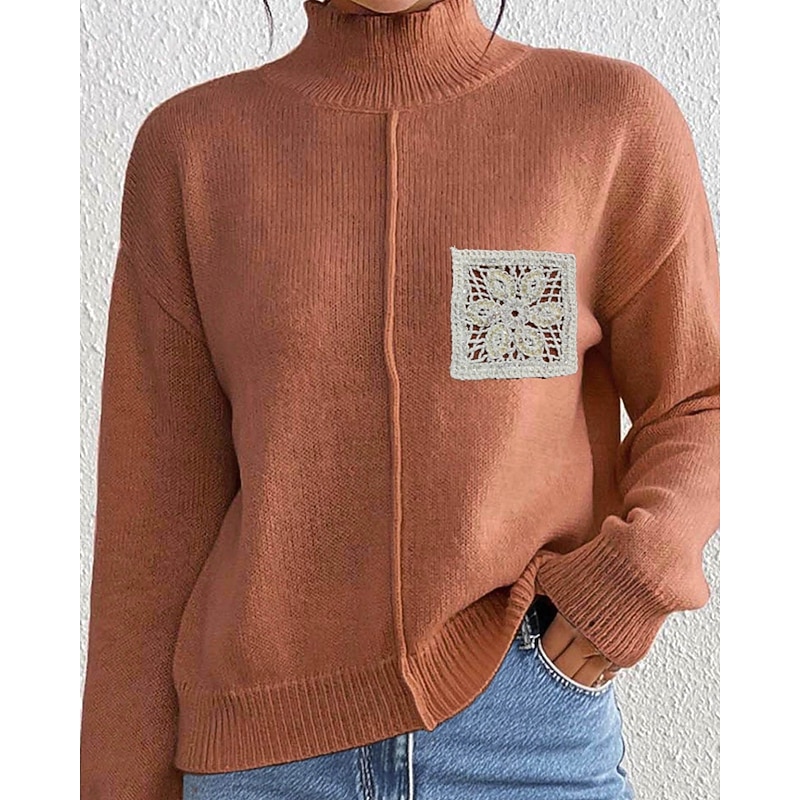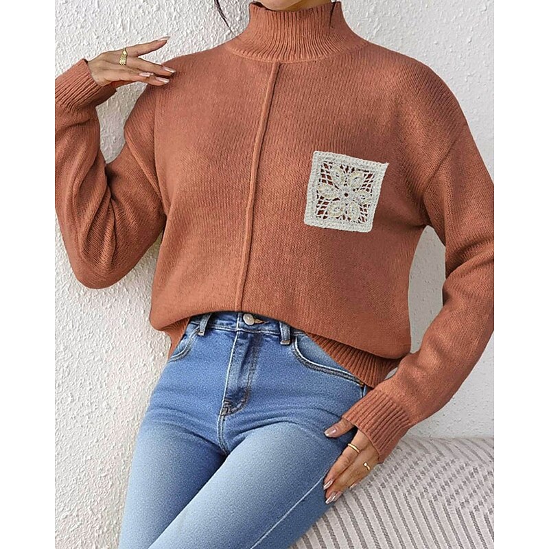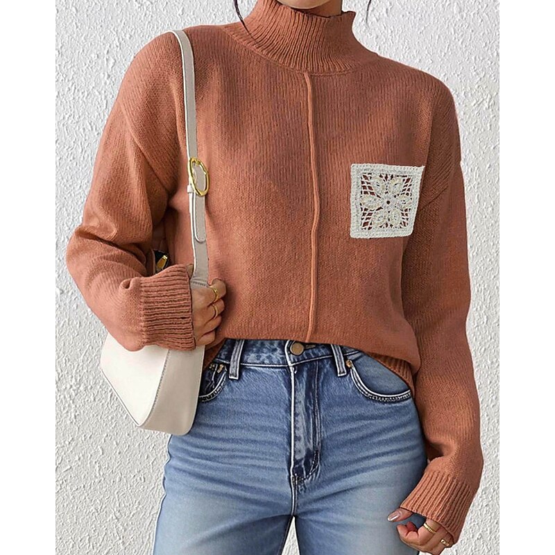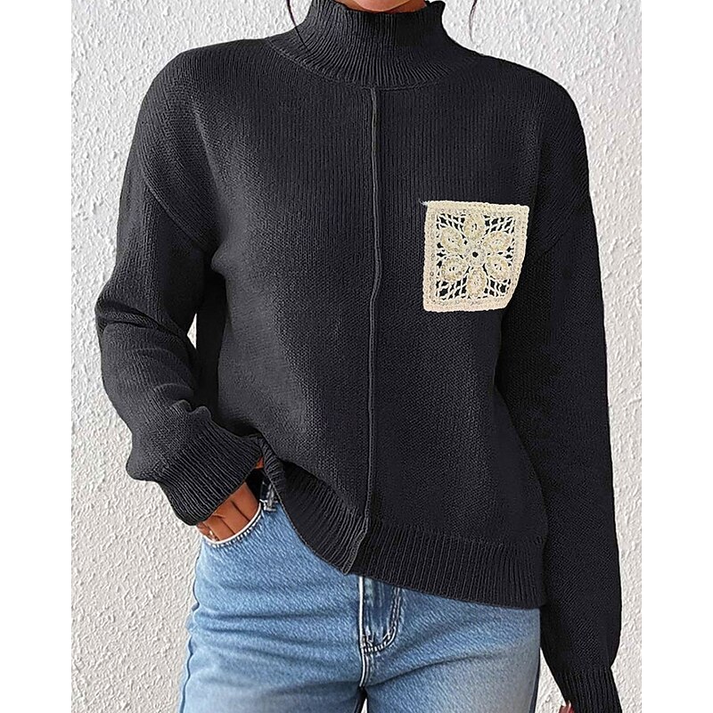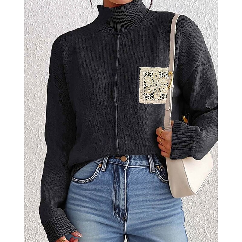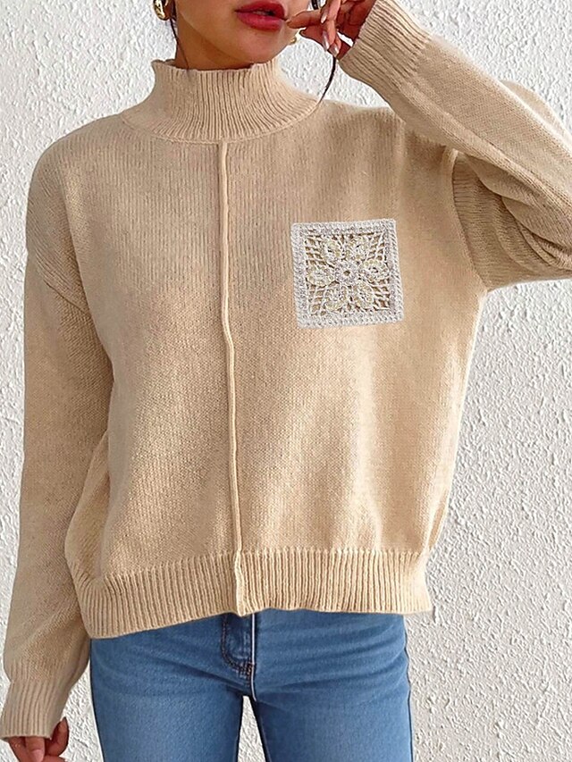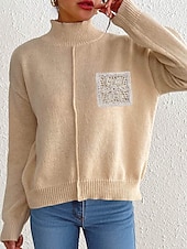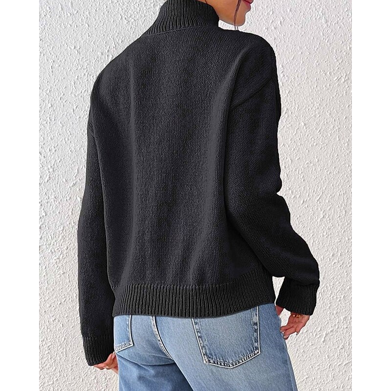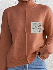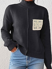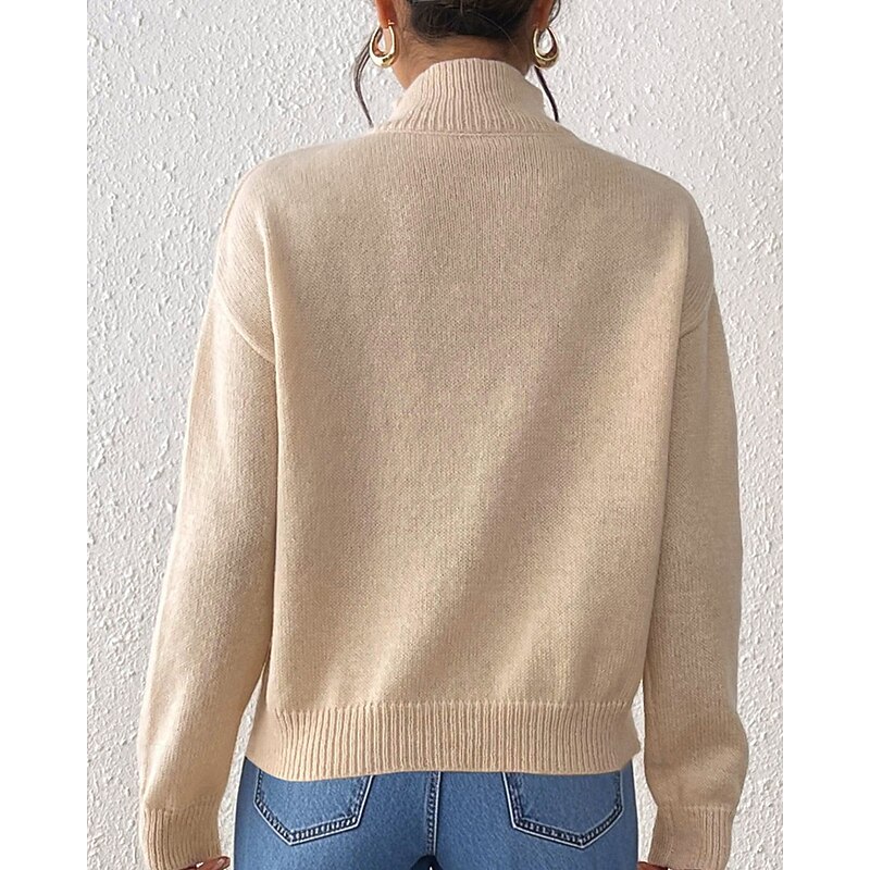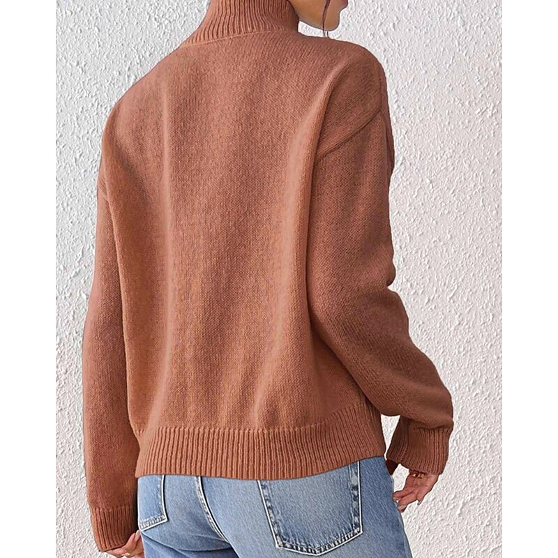 More information about Women's Sweater Pullover Streetwear Casual Solid Color Turtleneck Knitted Long Sleeve Regular Tops Knit Daily Holiday Going out Black Khaki Fall Winter