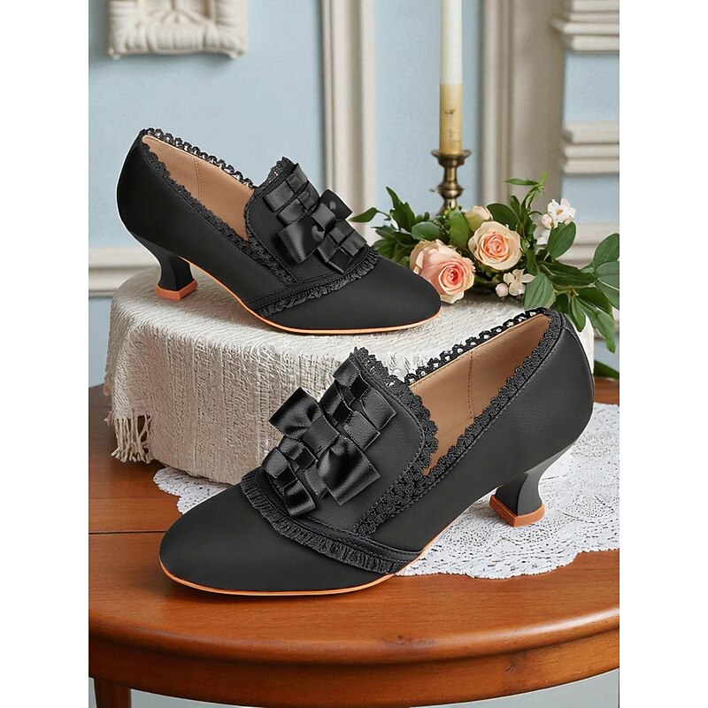 Women's Pink Satin Bow Heels with Kitten Heel – 18th Rococo Victorian Court Style Dress Shoes for Cosplay, Tea Party and Historical Reenactments 12