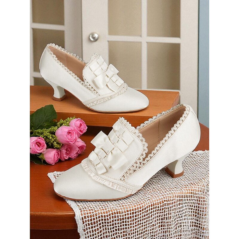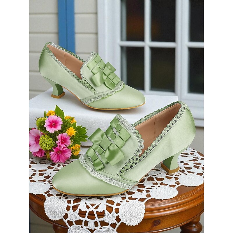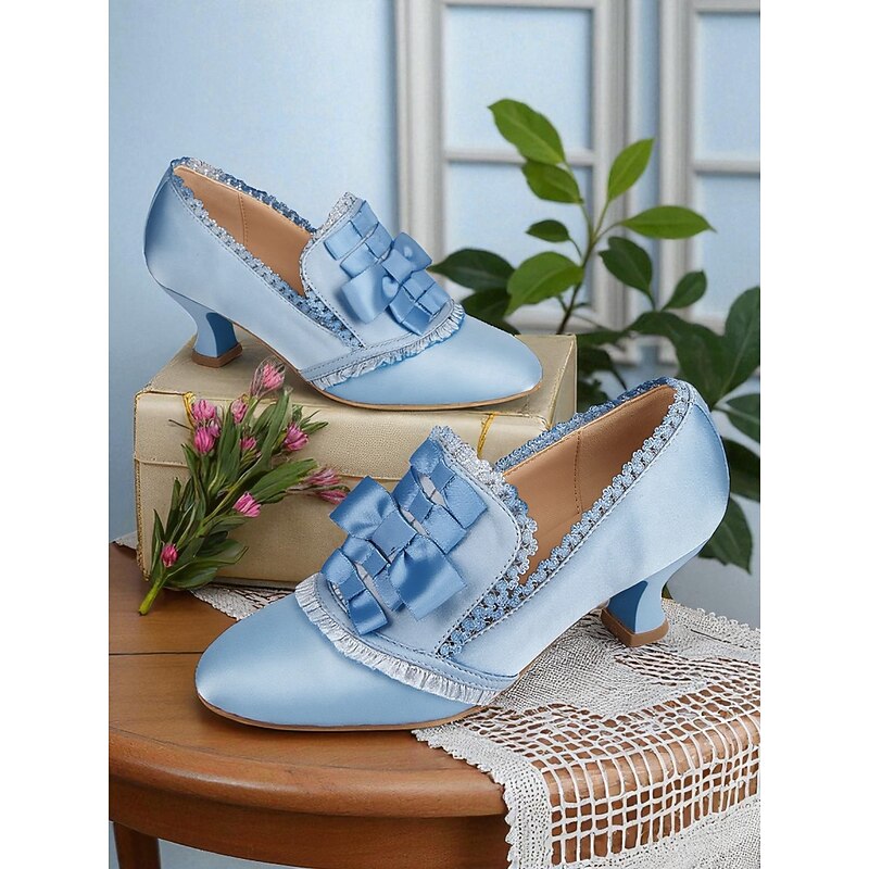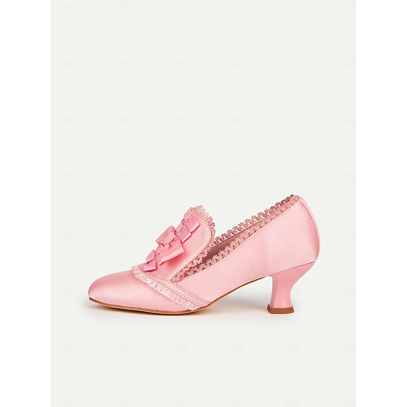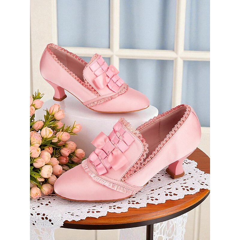 Women's Pink Satin Bow Heels with Kitten Heel – 18th Rococo Victorian Court Style Dress Shoes for Cosplay, Tea Party and Historical Reenactments 21