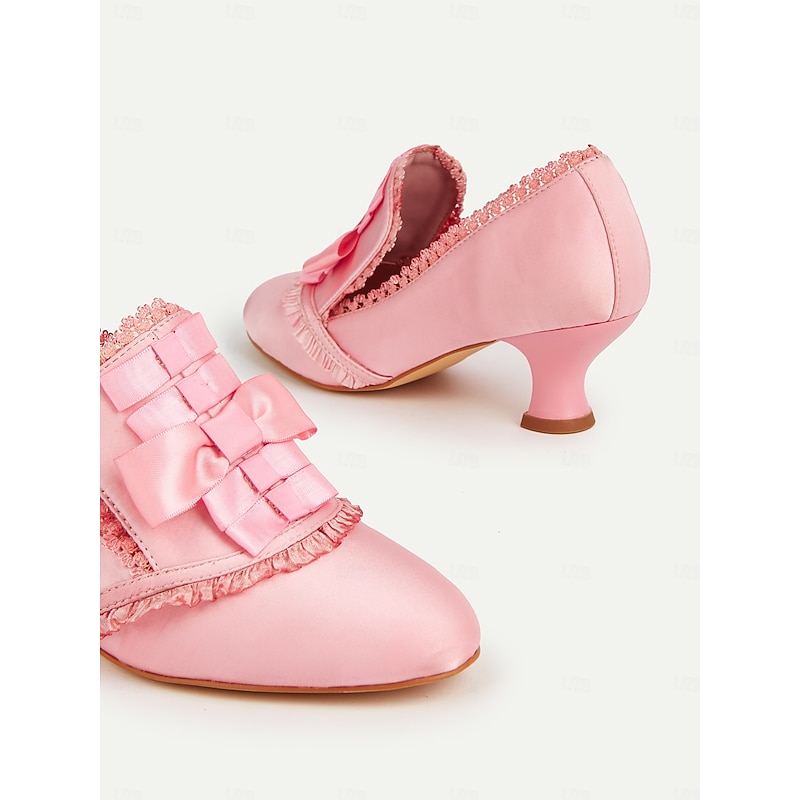 Women's Pink Satin Bow Heels with Kitten Heel – 18th Rococo Victorian Court Style Dress Shoes for Cosplay, Tea Party and Historical Reenactments 17