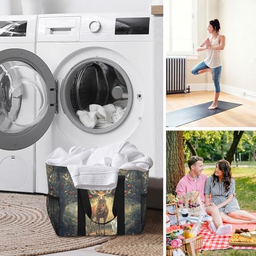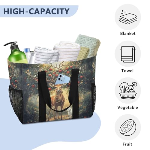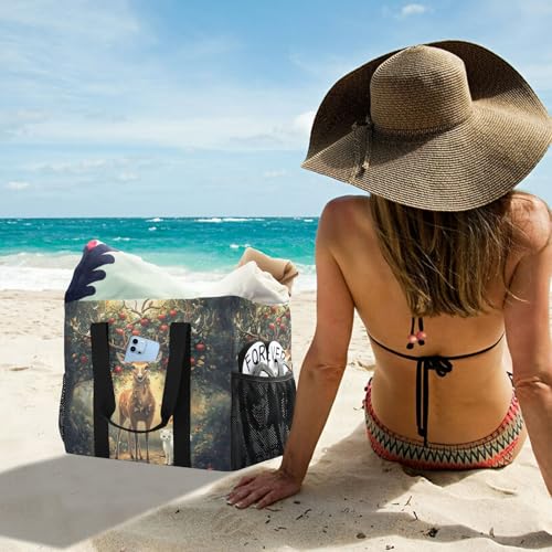HOT ! Large Waterproof Travel Tote Bag for Women Men, Fantasy Deer Fox Canvas Beach Bag with Lining & Pockets - Reusable Grocery/Laundry/Kitchen/Pool/Picnic Tote (15.4x9.8x12.8in)