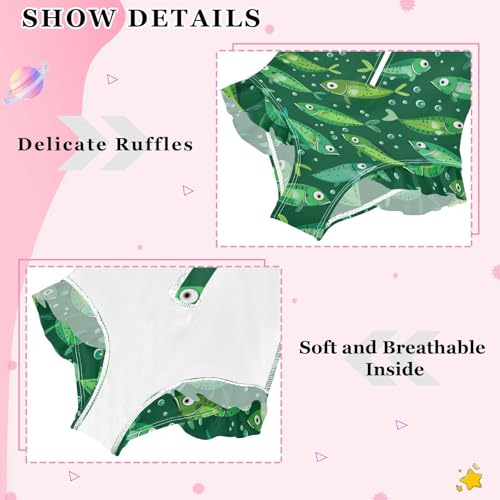 CaTaKu Girls One Piece Swimsuit Green Fishes Toddler Bathing Suit Long Sleeve UPF 50+ Rash Guard Swimwear 3-12Y 6