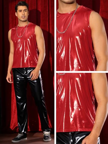 Lars Amadeus Metallic Tank Tops for Men's Holographic Sleeveless T-Shirt Disco Party Shiny Vest 5