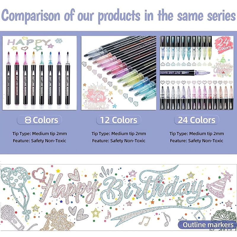 $9.49 - 8/12/24 Colors Outline Markers Self Double Line Self-Outline Metallic Pens For Scrapbook Photo Album Gift Card Making Easter Eggs Art Crafts 2025. Shop for cheap Painting, Drawing & Art Supplies online? Buy at lightinthebox.com on sale today!