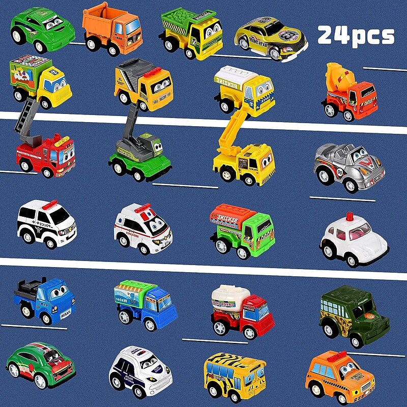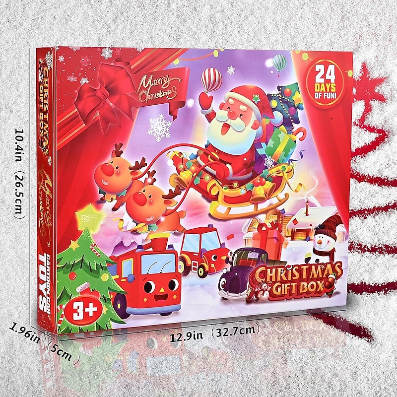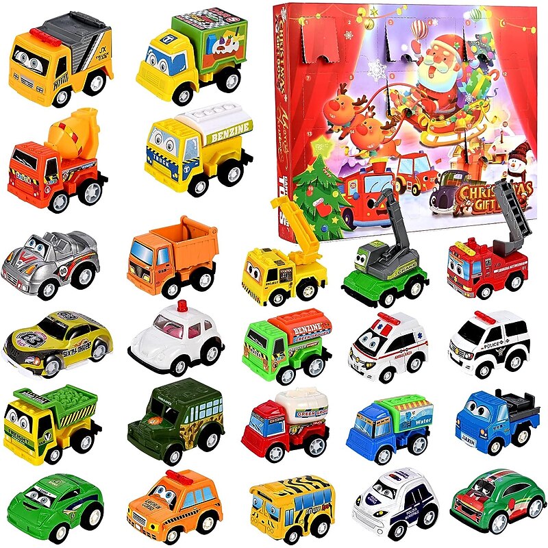 Highlights - Children's advent calendar: Make the countdown to Christmas even more exciting for kids with our advent calendar. Each day brings a new surprise to enjoy during the holiday season. - Christmas gift advent calendar: Count down the days until Christmas with our fun toy advent calendar. Each day reveals a special gift to bring joy to children as they wait for the big day. - Premium and safe material: Our pull-back vehicle toy is made from 100% non-toxic ABS plastic, ensuring safety for both children and adults. It is certified to meet multiple standards for peace of mind. - Perfect educational toys: Our car advent calendar includes 24 vehicles with authentic features and colors, providing a fun and educational way for children to explore the world of vehicles. Ideal for children aged 3 and up, it makes a perfect gift for interactive play during the holidays.