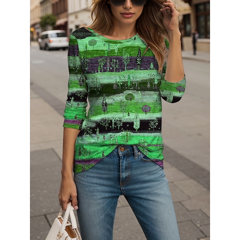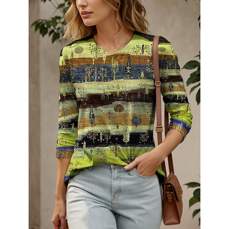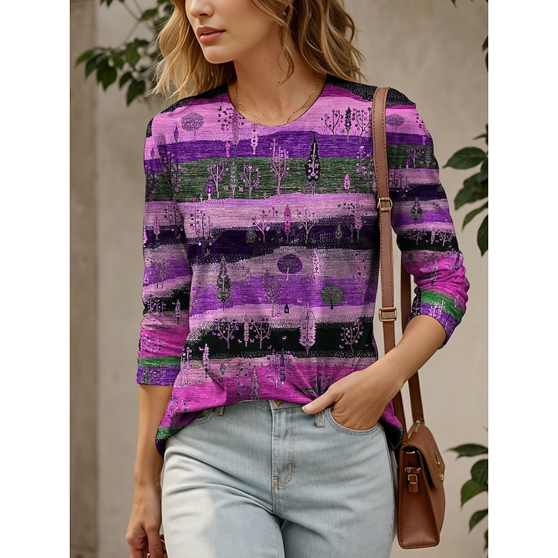 More information about Women's T shirt Long Sleeve Crew Neck Long Sleeve Tunic Graphic Geometric Striped Elegant Vintage Round Neck Regular Tops Daily Going out Weekend Print Yellow Red Blue Purple Green Prefall