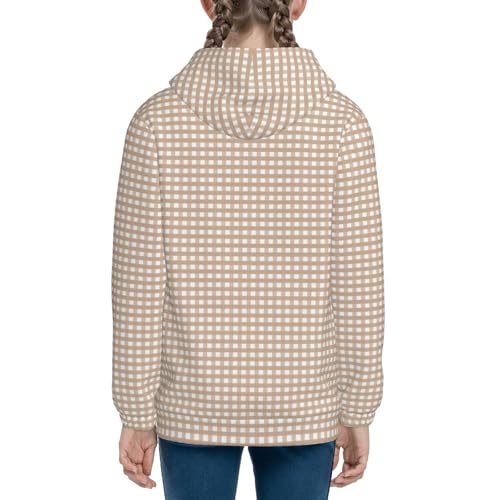 Brown Gingham Kids Pullover Hoodies Boys Zip Up Sweatshirts Girls Athletic Clothes with Pocket 5