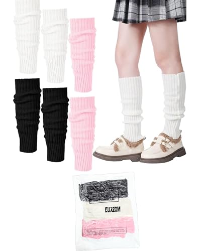 More information about Eurzom 3 Pairs Kawaii Winter Knitted Japanese Style Leg Warmers Knee High Loose Socks Y2k Harajuku Leg Warmers for Girls