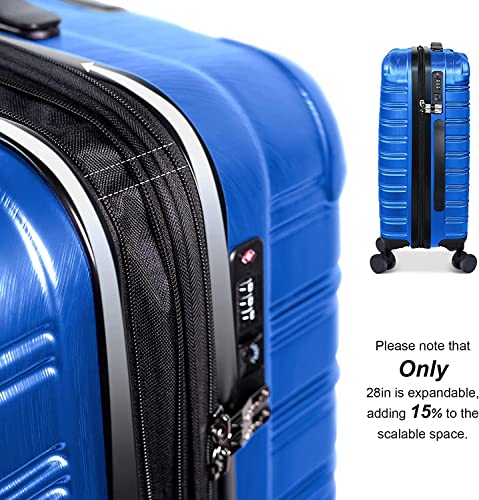 HOT ! Large Luggage Expandable Pc+Abs With Tsa Lock Hardshell Travel Big Rolling Luggage Suitcase Set Carry On Luggage Suitcase With Spinner Wheels 28 Inch,Blue