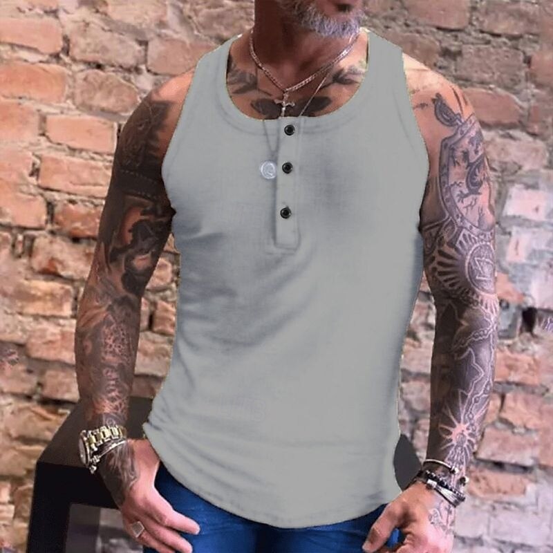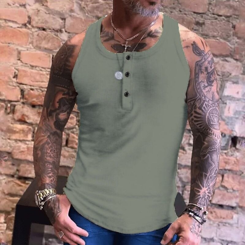 More information about Men's Tank Top Vest Top Undershirt Sleeveless Shirt Sleeveless Crew Neck Summer Plain Fashion Streetwear Muscle Button-Down Sports & Outdoor Athleisure Gym White Blue Green Top Tee for Men